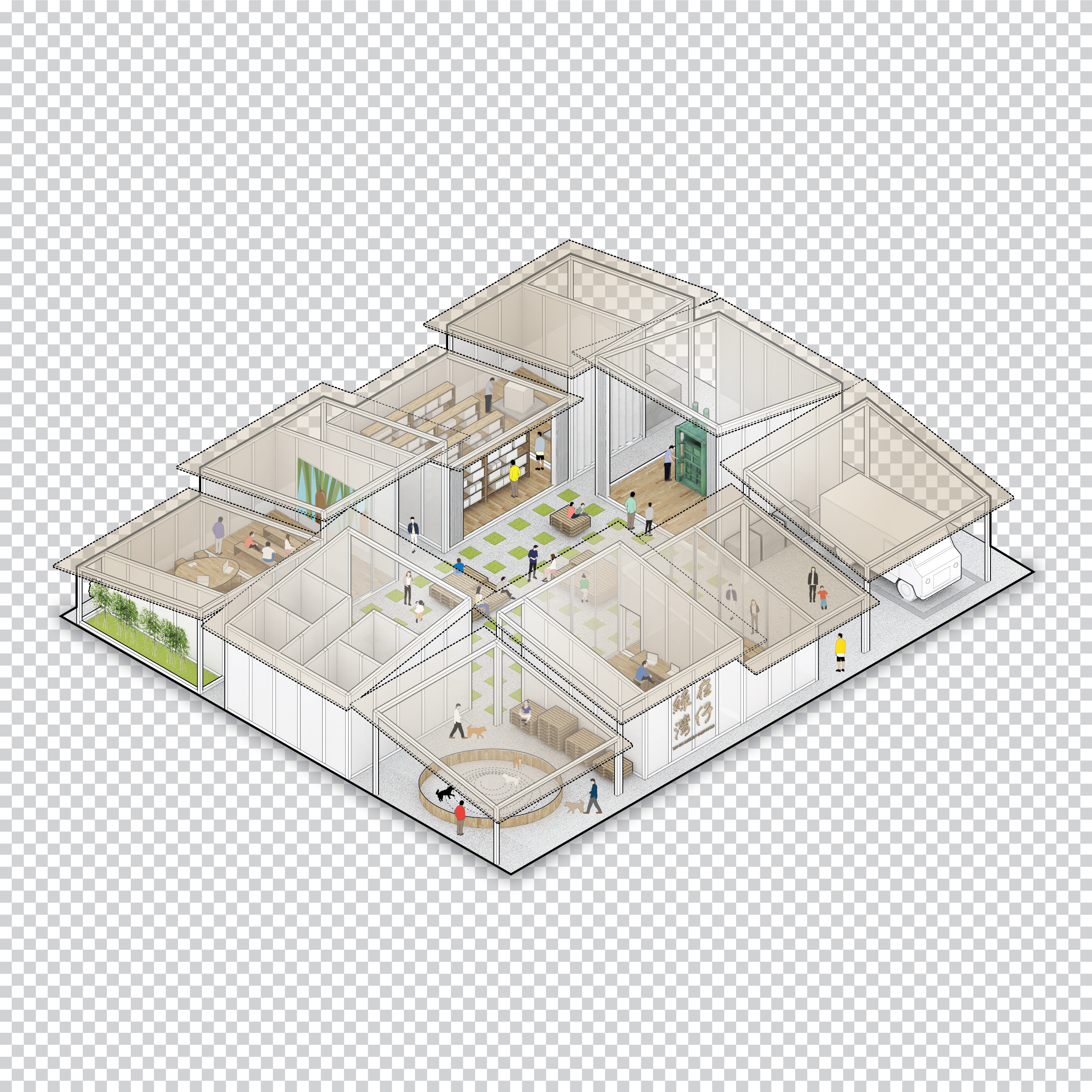 The Environmental Protection Department is seeking to build a Community Green Station (CGS) in Wan Chai in close proximity to the waterfrontpromenade. The CGS is a unique typology that aims to educate and promote environmental awareness to the public, also functioning as a collection point for different types of recyclables within the local community. Learning from the traditional villages and markets found in Hong Kong, our concept emphasizes on intimate and human-scaled spaces, program mixing and diversity of activities through the usage of small pavilions, narrow alleyways and courtyards.