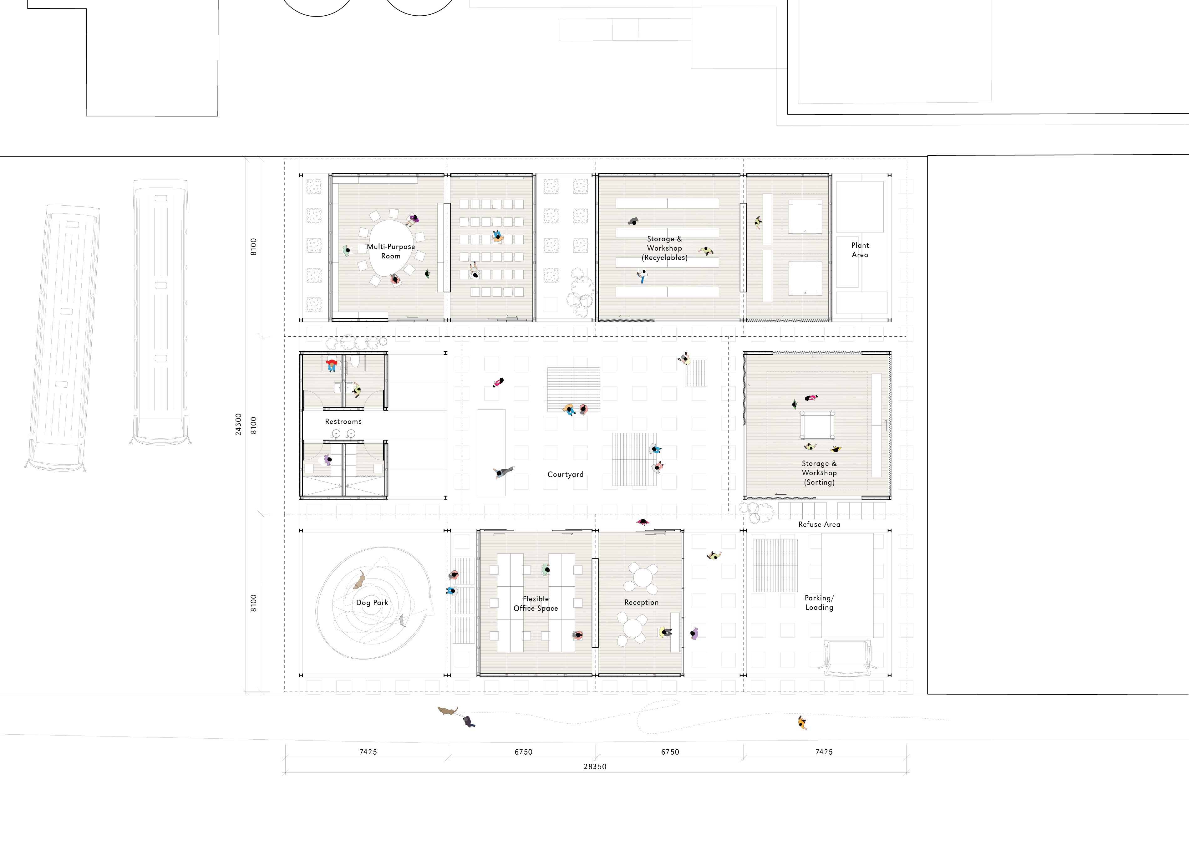Situated within a complex site with industrial character, our project responds to the specific conditions of the surrounding context through establishing public spaces, landscaping and building massing.