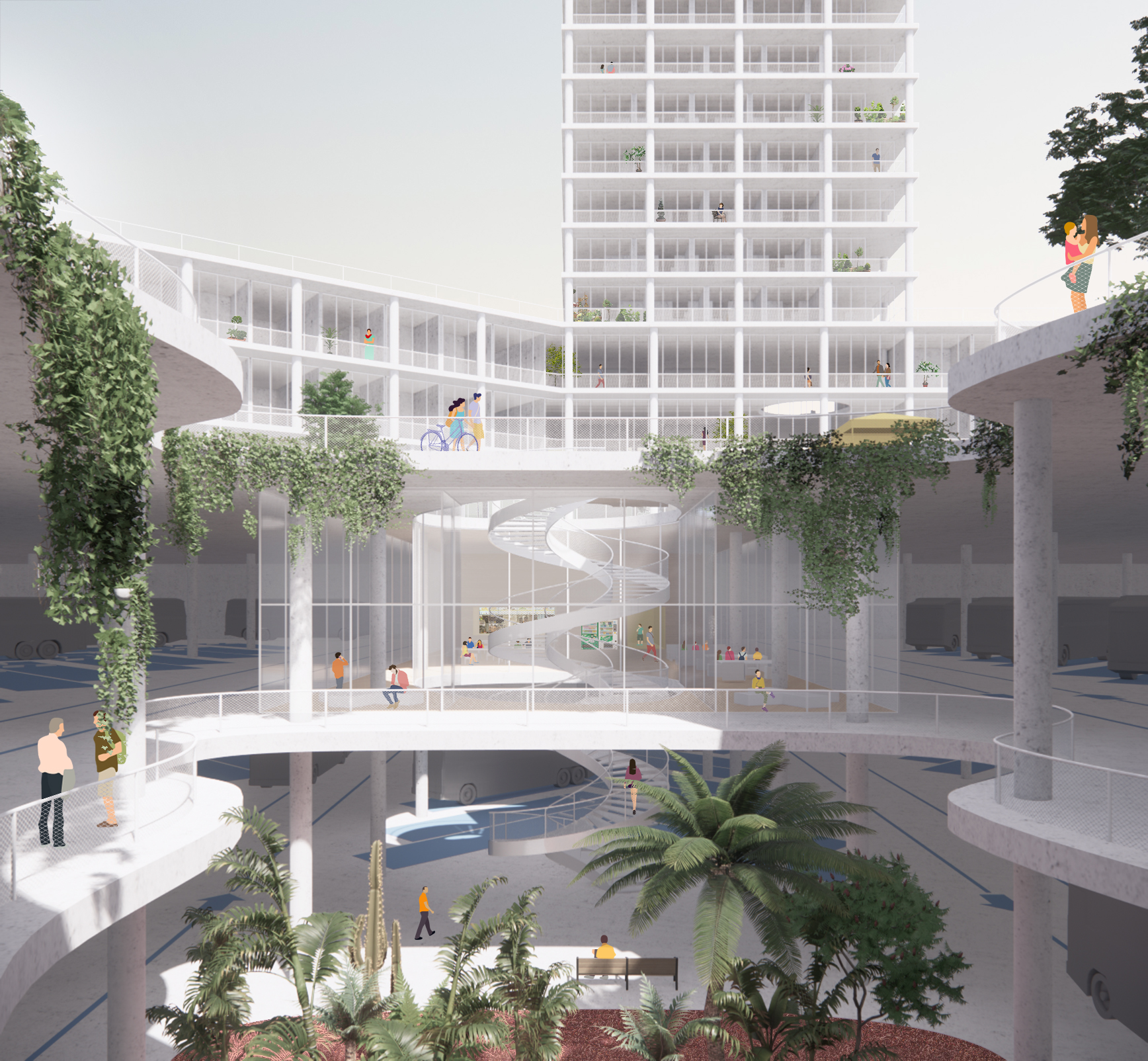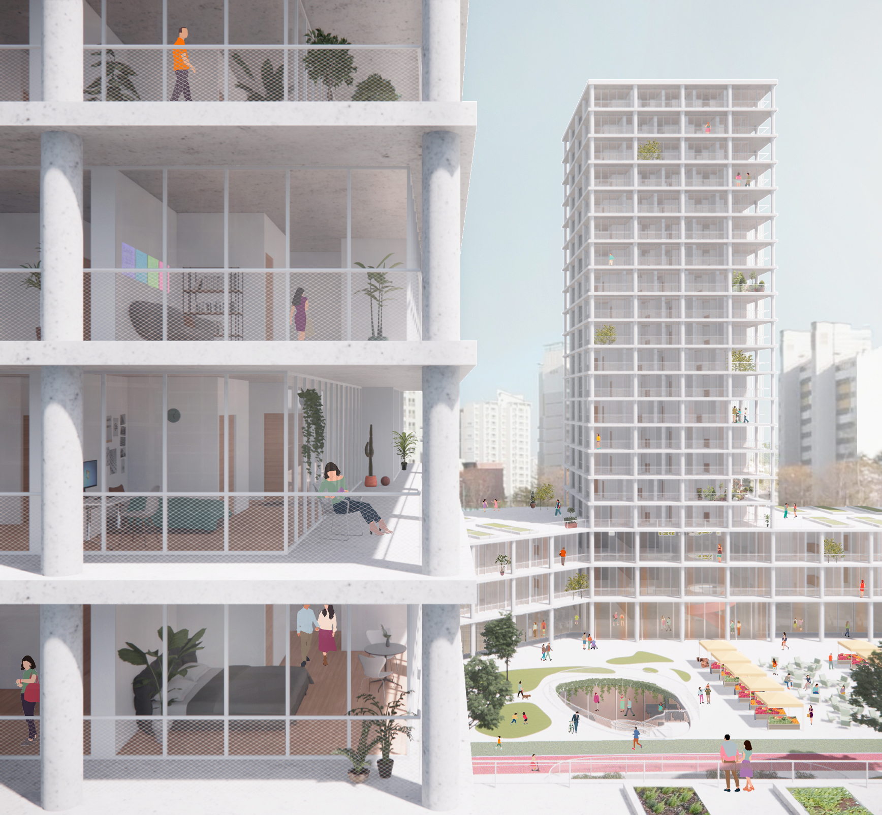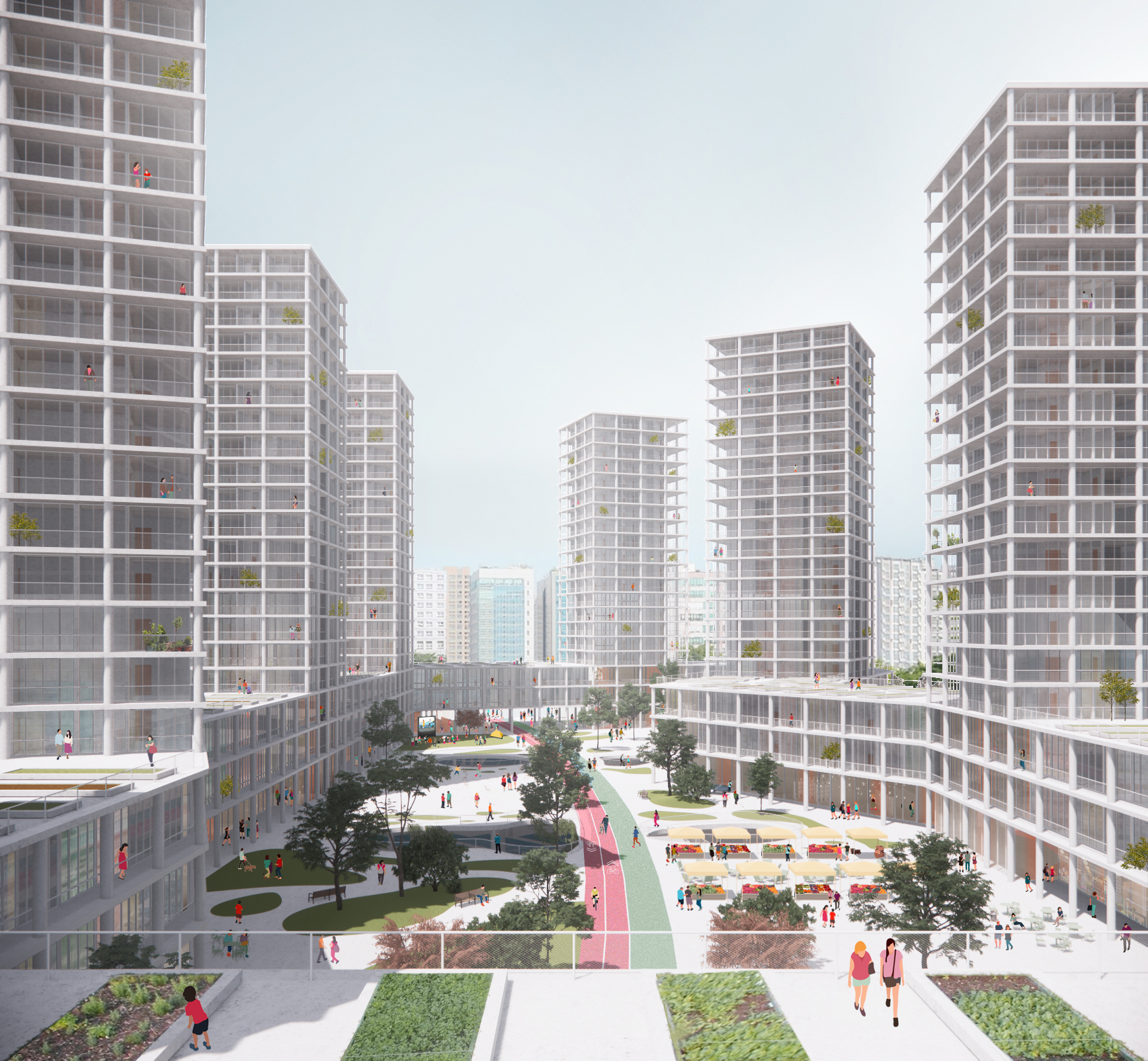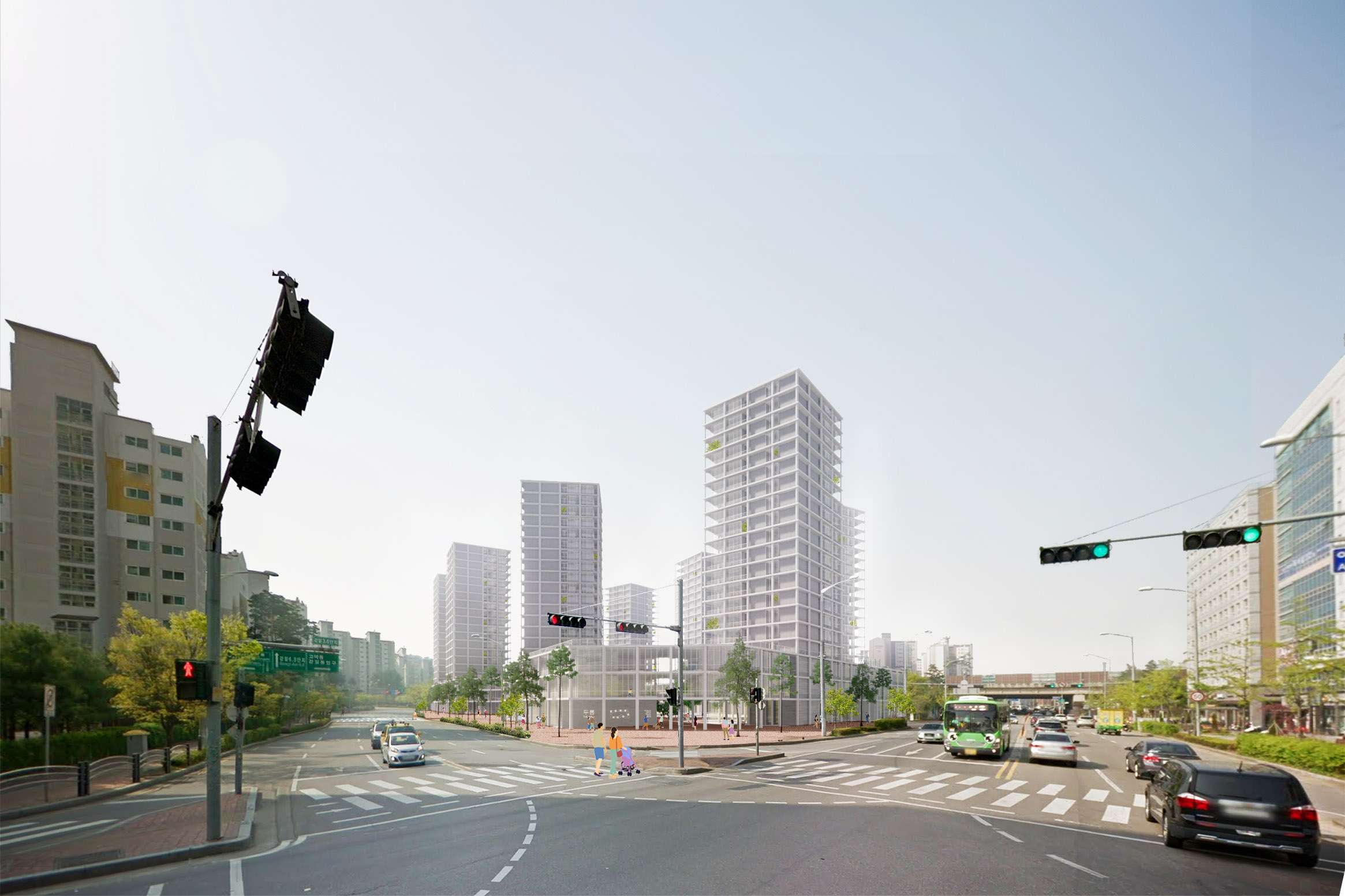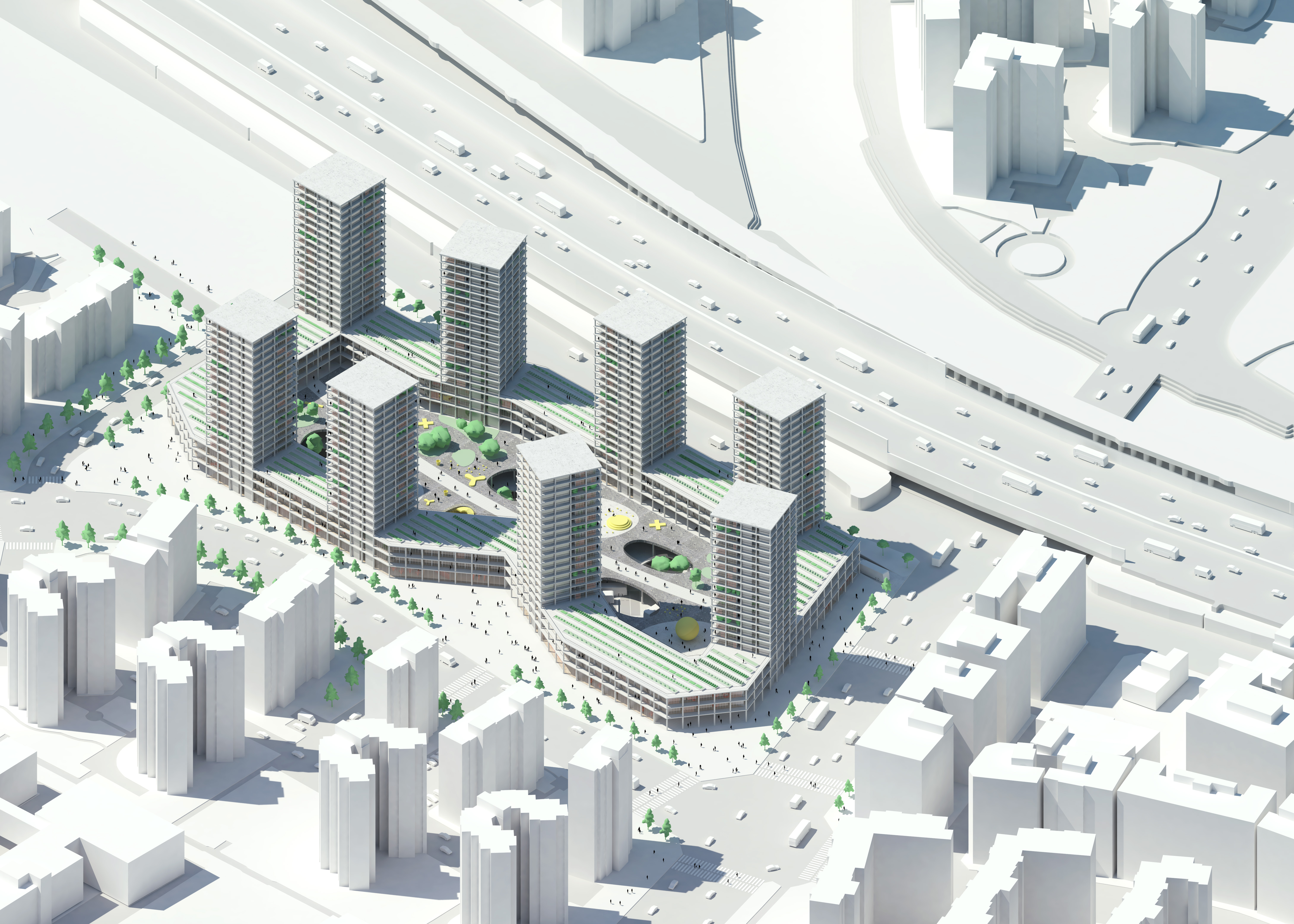 In light of growing housing demands, the City of Seoul and the Seoul Housing and Communities Corporation seeks to develop a new and innovative public housing model that is compact, self sufficient, and iconic. Currently, there is limited land resources within the boundary of Seoul, which has resulted in many large-scale ‘suburban’ district developments around the periphery of the city. This has caused extreme traffic issues due to increased commute distances and also encroachment of green spaces. Furthermore, these new developments are not considered as self-sufficient due to the lack of convenient facilities for residences. Our project seeks to create a ‘Compact City’ - a new development model that is an amalgamation of landscape, urbanism and architecture which provides programmatic self-sufficiency, improves public spaces, celebrates new ways of living, encourages community and public activity, and harmonizes the surrounding neighborhood.