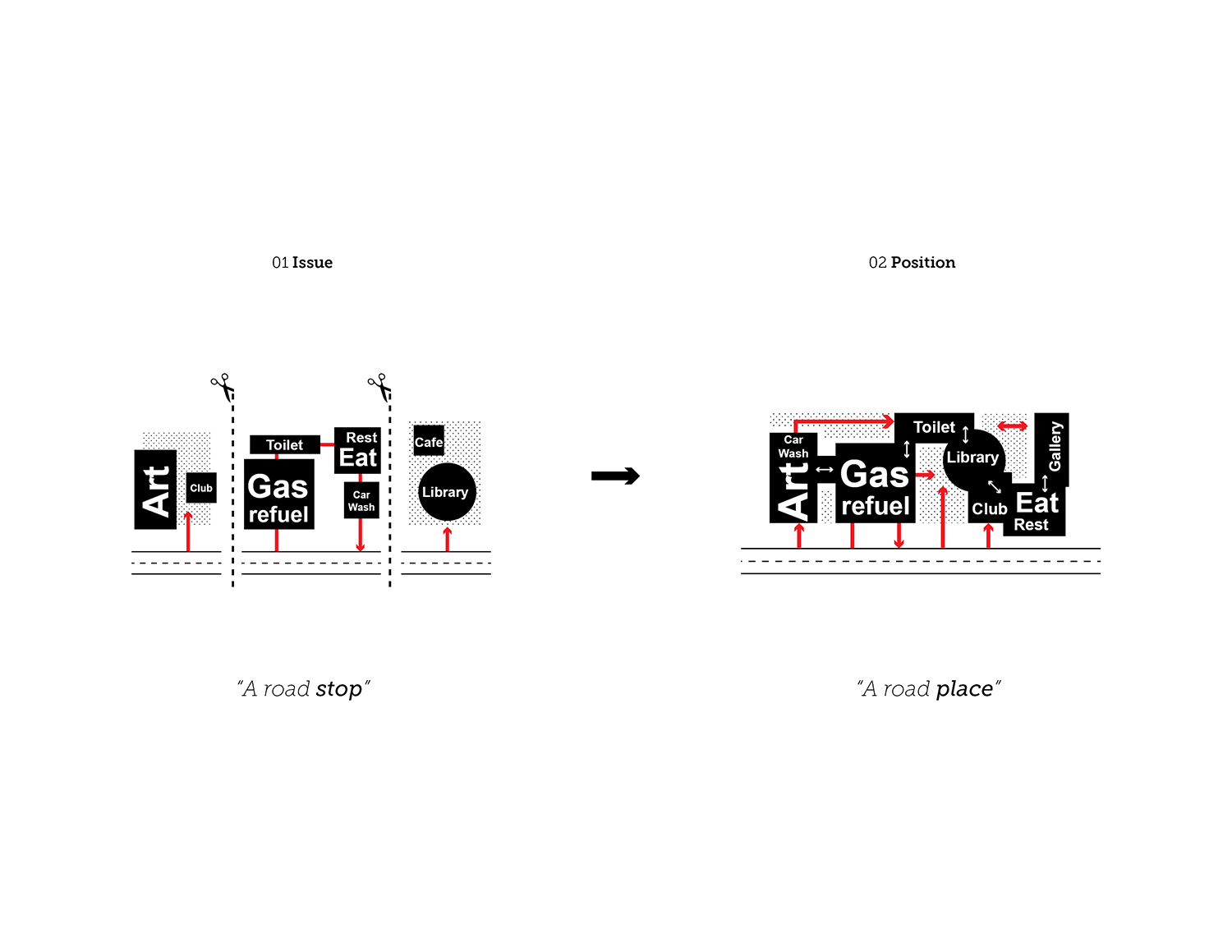 How do you give a road stop an identity? How do you create a road stop that is connected with the surrounding? Can a road stop contribute to its surrounding community? How do you make a road stop into a road place?