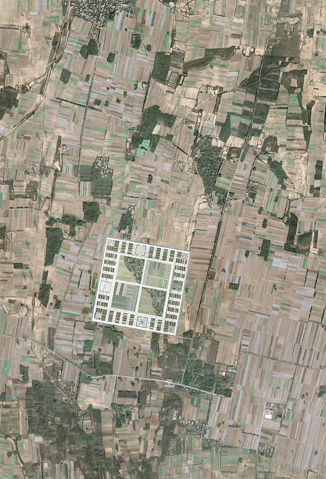 In order to transition the gap between rural and urban, we must distill and safe guard the traditions and characteristics of rural life in China. Learning from the tradition of city making in ancient China and the philosophy that underpins it, the Imperial city embraces ideas of Confucinist thinking, with emphasis on unity, community, harmony, and balance. Constructed from the dominant type of the traditional courtyard house, the scalable deep structure uses the idea of framing to organize, define and capture. Our design for the new town utilizes the scalability of the frame as a social and spatial framework to harness the ideas of collectiveness as seen in the rural villages. In delineating 4 edges, our strategy of framing is not to promote a dense urban core, but rather to use the frame as a strong, simple and clear architectural artefact to create an aesthetic and productive object through the use of landscape.